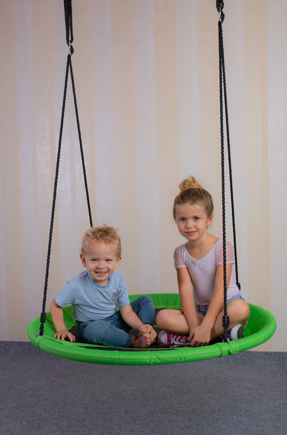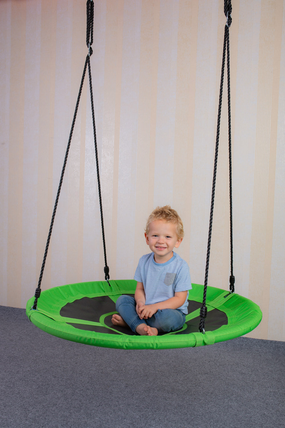 Design houpací kruhové rohože je moderní a atraktivní. Zelená barva je svěží a bude se líbit jak dětem, tak dospělým. Sedátko je mimořádně měkké a pohodlné, takže se na něm děti budou cítit jako na obláčku.