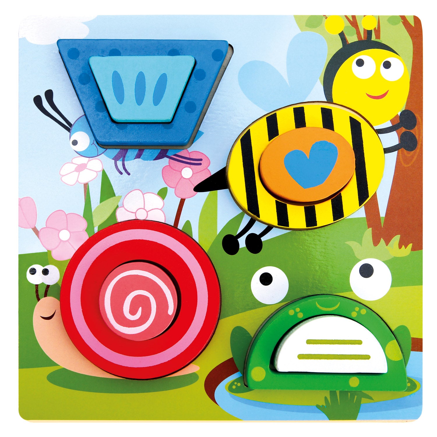Seznamte vaše děti s veselými zvířátky u rybníka. Díl po dílu si mohou skládat obrázky, které je naučí rozpoznávat a pojmenovávat barvy a zvířátka. To vše v bezpečí dřevěných dílků, které jsou snadno uchopitelné a skládají se velmi jednoduše.