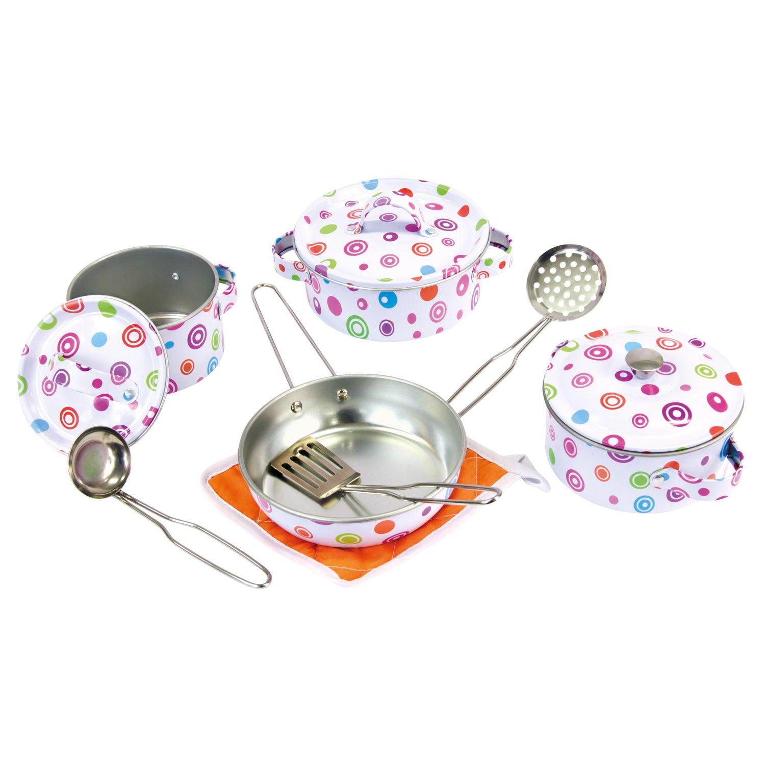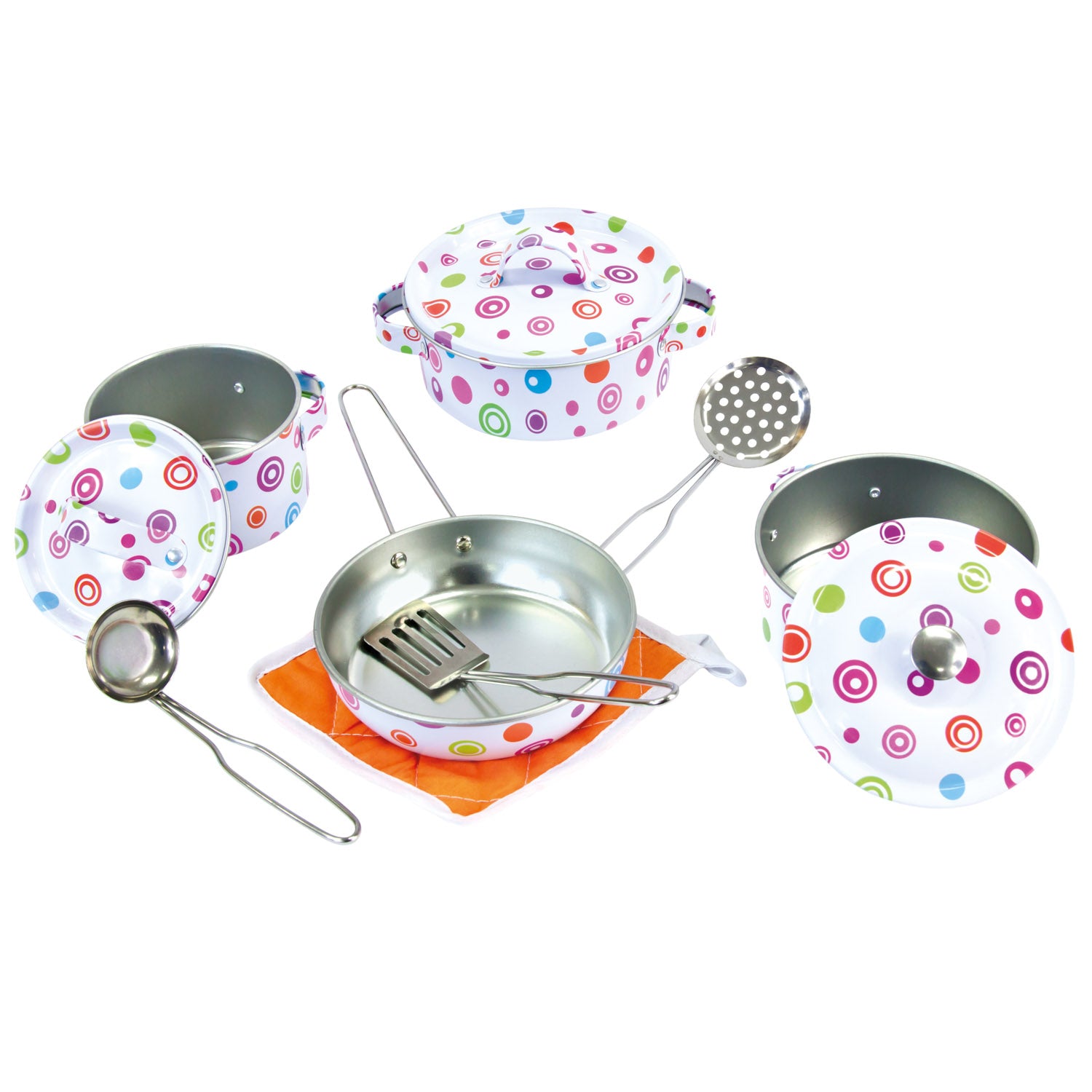 Farbe: Das farbenfrohe Kochgeschirrset ist so gestaltet, dass es für Kinder attraktiv ist und ihre Neugier und Spiellust anregt.