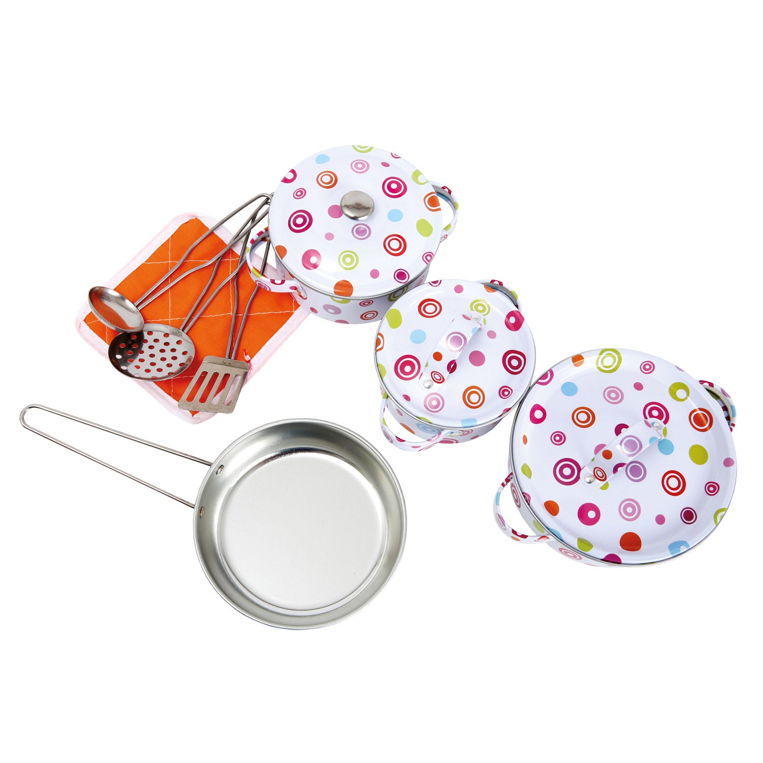 Inhalt: 11 Teile Kochgeschirr, mit denen Ihre Kinder die besten Fantasiegerichte zubereiten können.