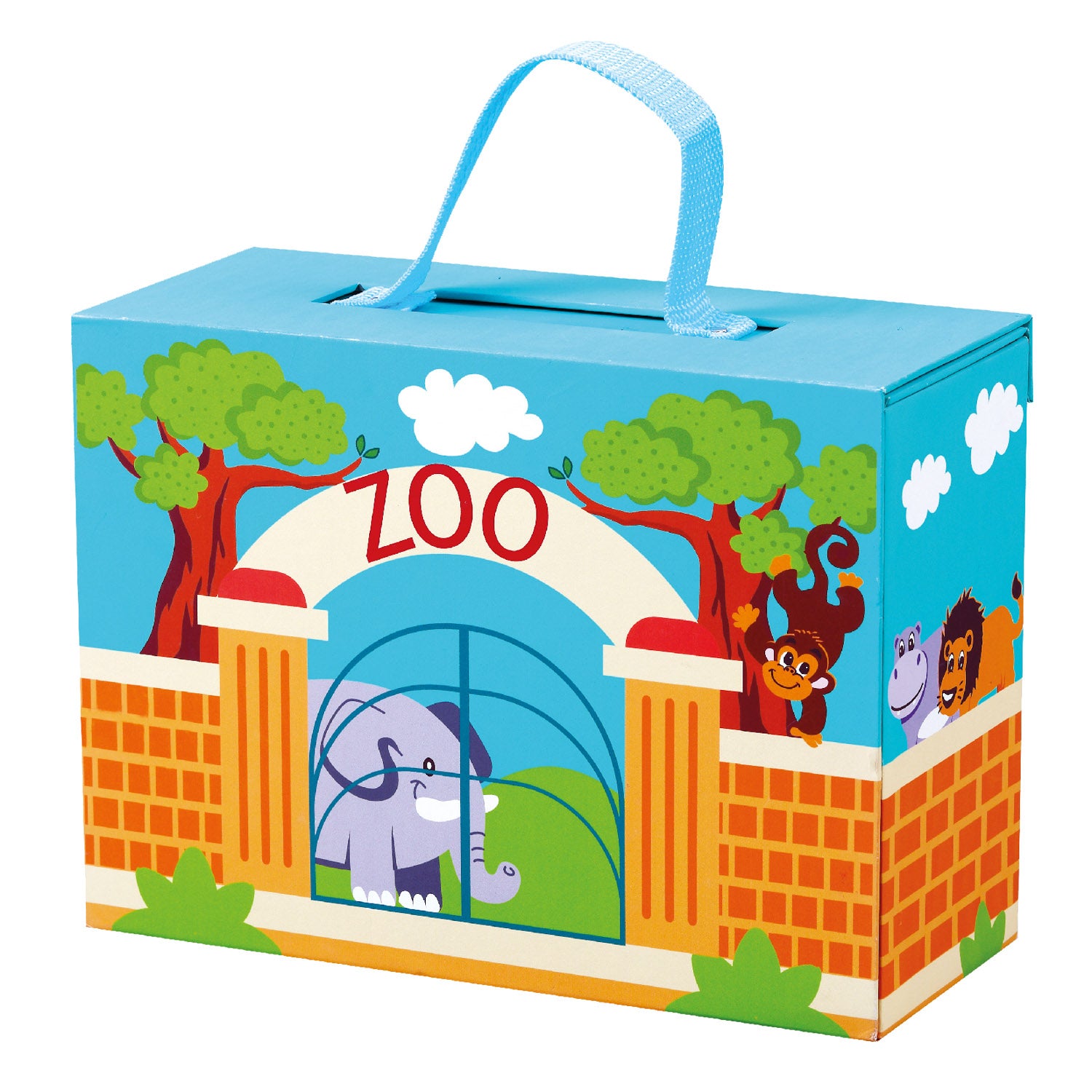 Includes 12 cheerful exotic animal figurines that can be easily stored in a handy cardboard case. The suitcase serves not only for toy storage but also as a play area. With this toy, your child will never be bored while developing fine motor skills and creativity.