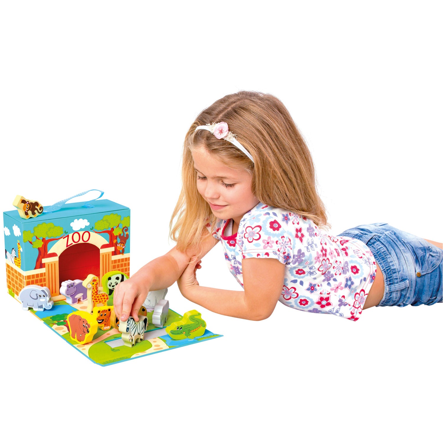 TheTravel case with animals - ZOO is the ideal companion for your little adventurers. This wooden toy from Mertens brings a piece of exotic jungle to any child's room. It is designed to keep children entertained while developing their motor skills.