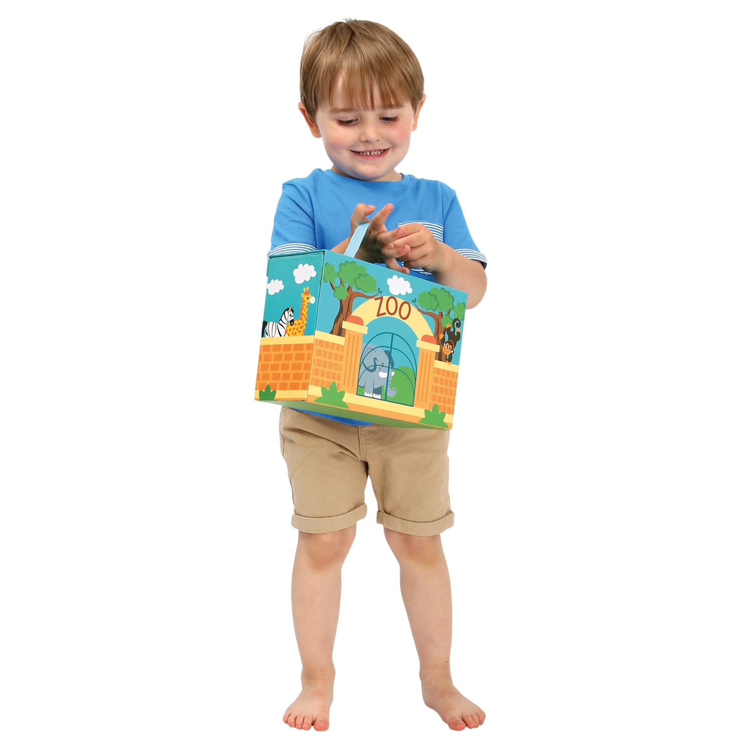 The toy measures 248 x 105 x 182 mm and weighs just 0.84 kg, making it lightweight and easy to carry. The animal figures are made of wood and the case is made of cardboard. The colourful design makes the toy very attractive and children will love it.