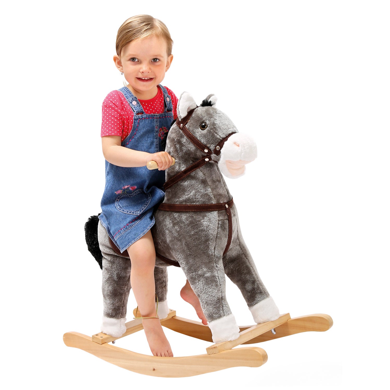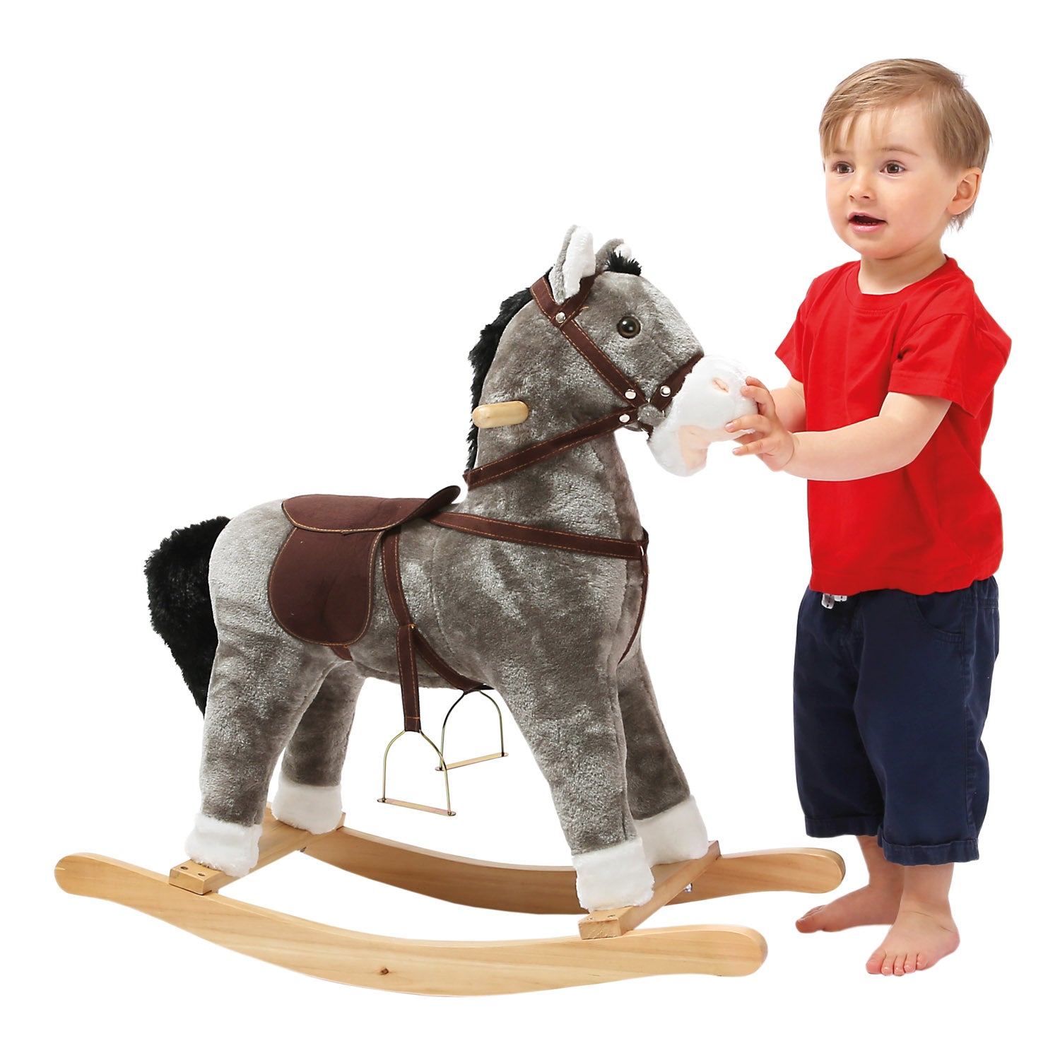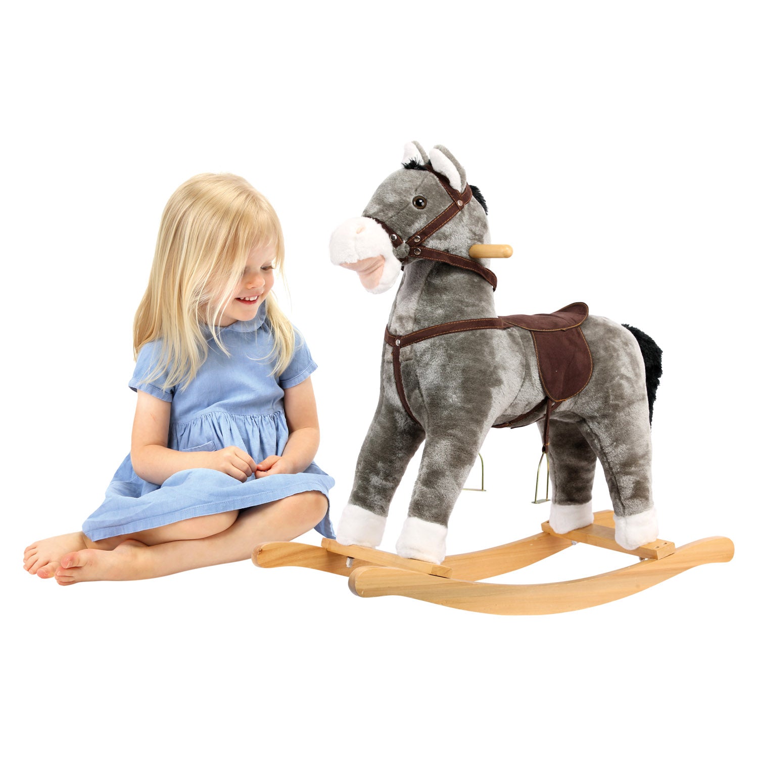 Brighten up your child's room with this amazing plush rocking horse. Not only will it provide your child with hours of fun, but it will also encourage their motor development. With a hidden button in the horse's ear, your child can learn what a real horse sounds like.